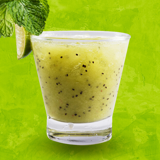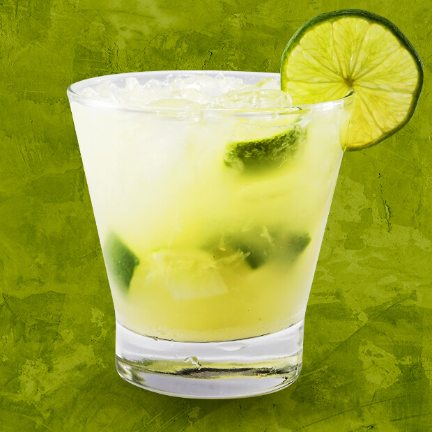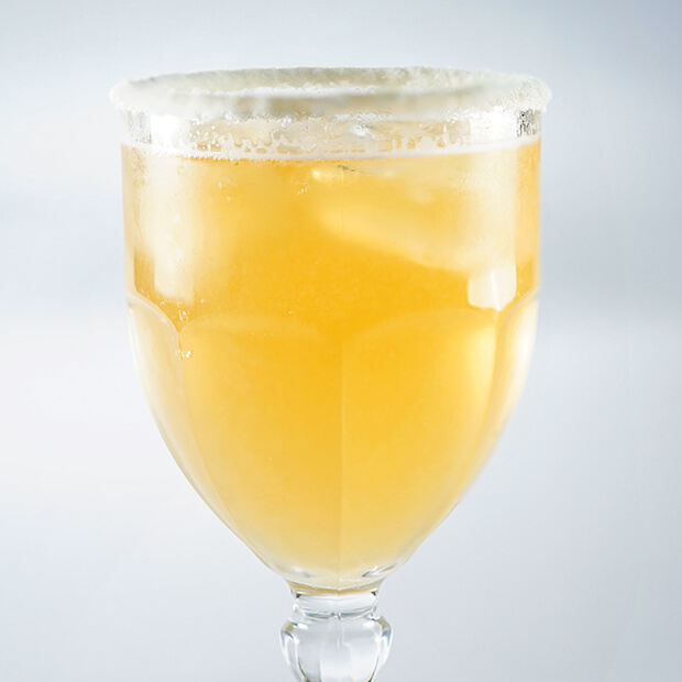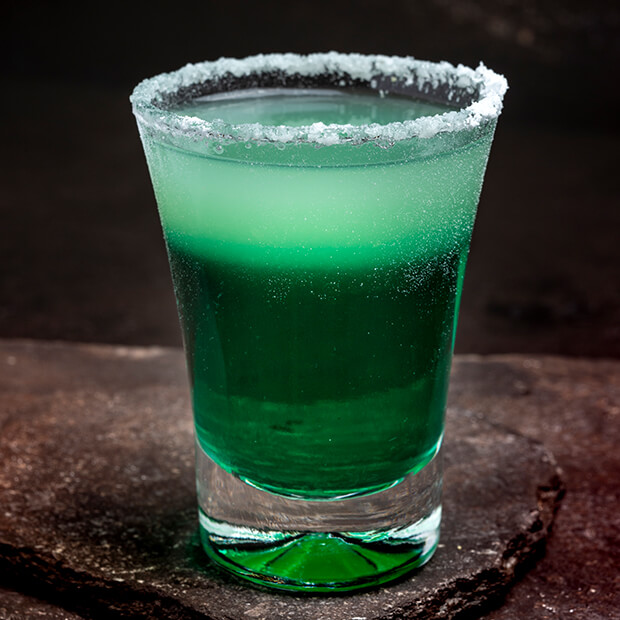 Licor de menta, limão e corda de sal.