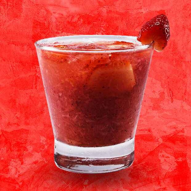 Morango, gelo batido com leite condensado e vodka.