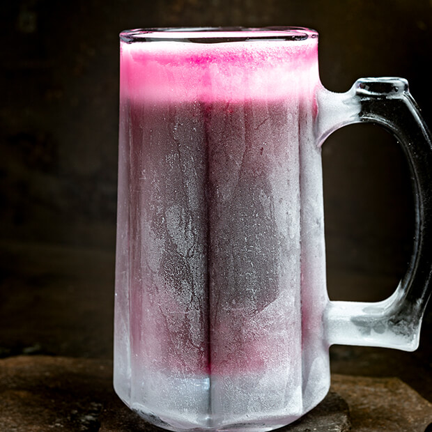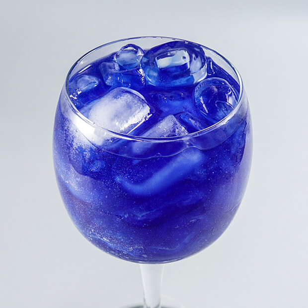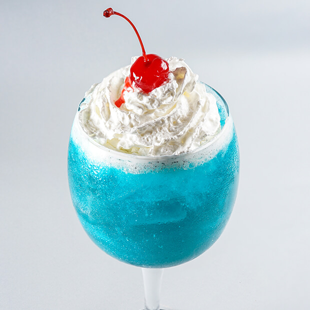 Tequila, granadine, curaçau Blue e leite condensado.