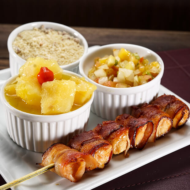 Acompanha somente o melado de cana ou geleia de pimenta.